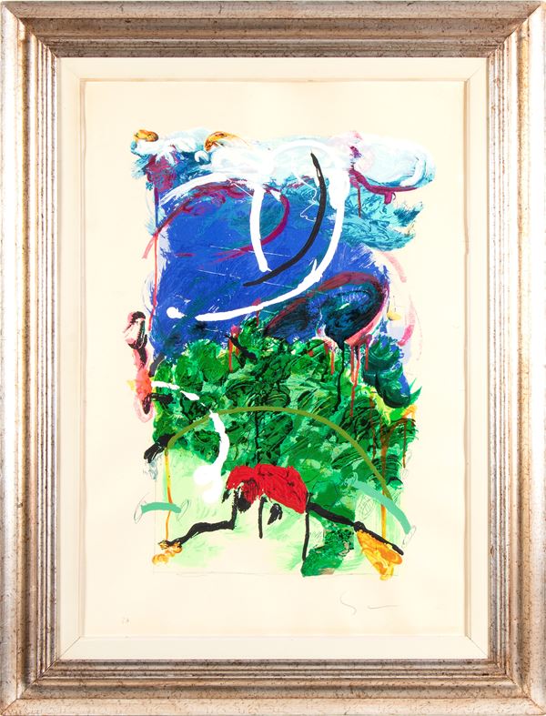 Signed lower right: Schifano, P.A. lower left. On the back a label by La Lampada di Aladino gallery