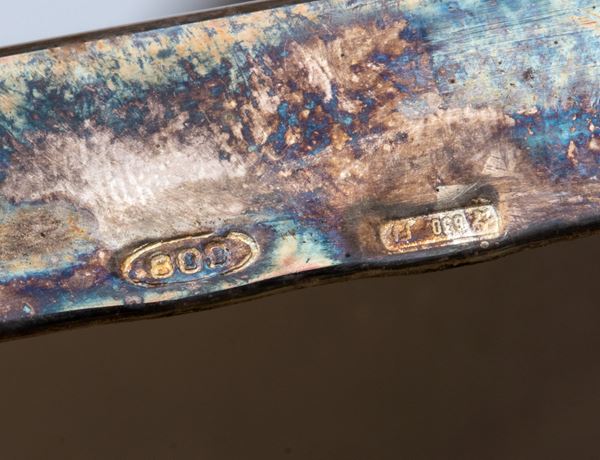 1) Card holder size: 0.8 x 10 x 8 cm; hallmarked “800”.