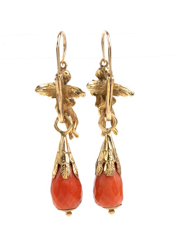 low title yellow, each depicting cherubs surmounting a Mediterranean coral (corallium rubrum) drop pendant.