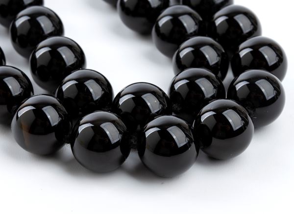two onyx strand beads, 18k yellow gold butterfly shape clasp.