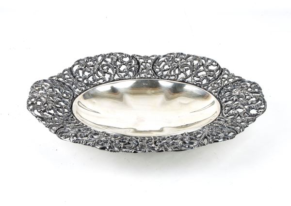 Oval basket, 800/1000 silver, hallmarked "800", dimensions 5.5 x 32 x 27 cm;