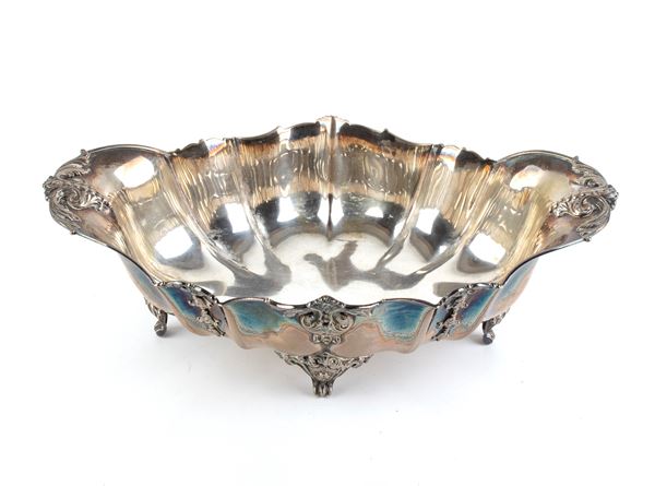of oval form with relief leaf motifs and resting on four feet with the same motif.