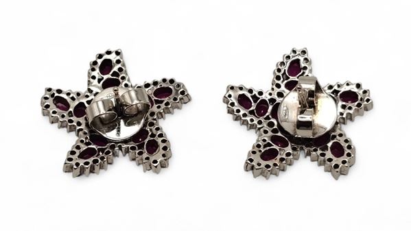 Glistening like treasures in the sea, these ocean-inspired earrings are playful and bright. Each in 18k yellow gold shaped like a starfish and beautifully embellished with round shaped ruby and brilliant cut diamonds.