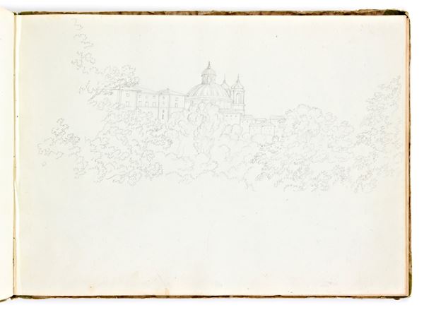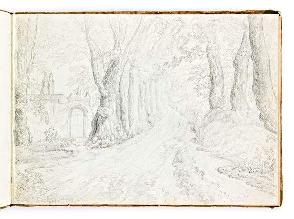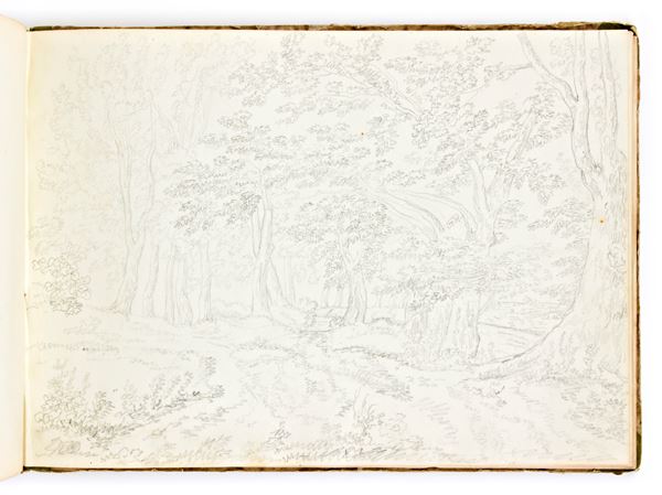 In-8ยฐ, oblong, mm. 180x245, 30 cards. Contemporary binding with mute spine, slight defects and signs of aging on the covers and spine. 1 card is detached. English album from the 19th century, with landscapes and views of woods and mountains made in pencil, sketches done on many of the 30 cards that make up the album.