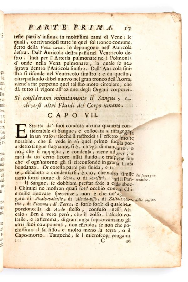 Format in-4ยฐ, mm. 215x155, pp. (20), 339, LXXXVIII, 58. Copy missing Plate XI and leaves E2, E3 (description of plate XI). Contemporary full parchment binding with handwritten title on the spine. Marginal tears with loss of text on the leaf with dedication to Clement XI and on leaf C1. Restoration on Plate 1 (crumpled) and on leaf a2 with part of the text reintegrated by hand. Sporadic foxing.