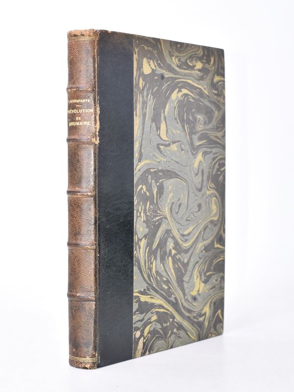 Extremely rare second edition (the first is from 1845) of the historical narratives on the coup d'état with which Napoleon overthrew the Directory and seized power in France. A copy of noble provenance, with a long and heartfelt autograph dedication by Giovanni Battista dei principi Lancellotti to the noblewoman Luciana Bonaparte Valentini in Faina, dated January 1879.