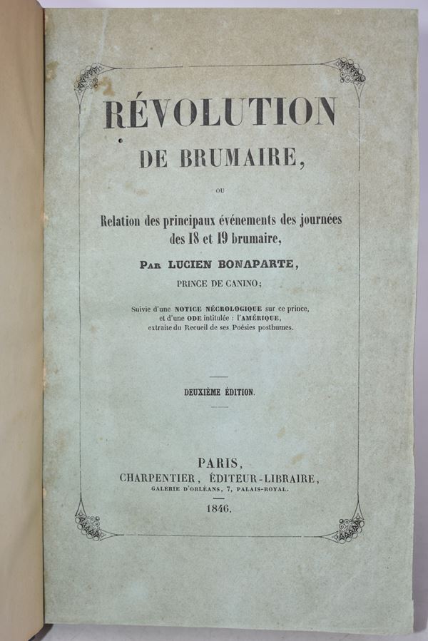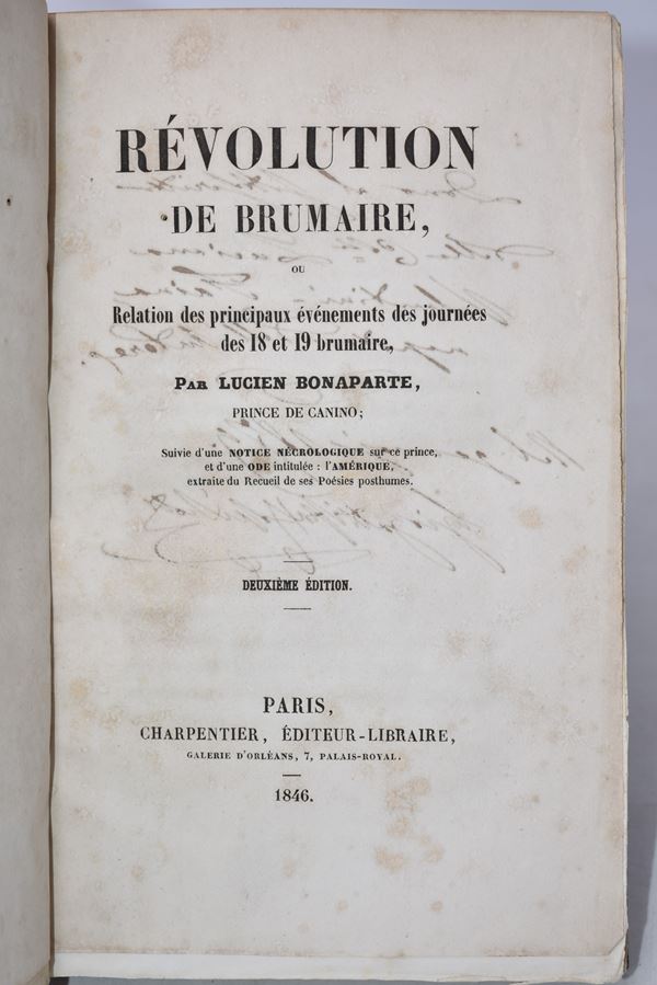 Bonaparte, Lucien: RÉVOLUTION DE BRUMAIRE. RELATION DES PRINCIPAUX EVENEMENTS DES JOURNEES DES 18 ET 19 BRUMAIRE. DEUXIEME EDITION. Paris, 1846, Charpentier.
