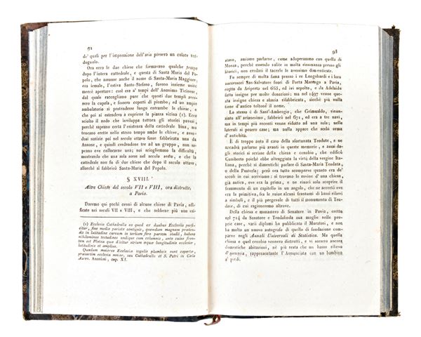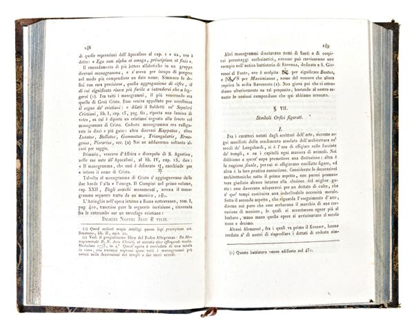 Complete work in 2 parts bound in a single volume. Format in-8ยฐ, mm. 215x140, pp. 267, (1), XII, 214, (2). Complete. Elegant contemporary half-leather binding with gold decorations and titles on a leather tag on the spine. Covers and endpapers in old marbled paper. Edges in blue. Excellent copy, with clear text and slight foxing on the leaves. Minimal defects and signs of aging.
