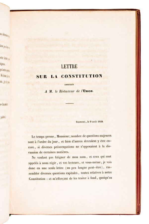 French pamphlets with collection of letters (extracts from the newspapers Père Duchene & L'Union 1850) of the French nobleman M. Henri La Tour du Pin Chambly, printed in Paris in 1848 and 1851. Concerning the revolutions of 1848.