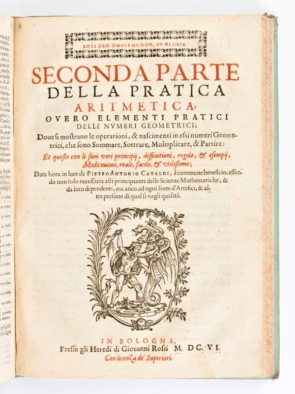 [Mathematics] CATALDI, ANTONIO PIETRO: FIRST PART OF ARITHMETIC, OR PRACTICAL ELEMENTS OF NUMBERS - SECOND PART OF PRACTICAL ARITHMETIC. Bologna 1602-1606
