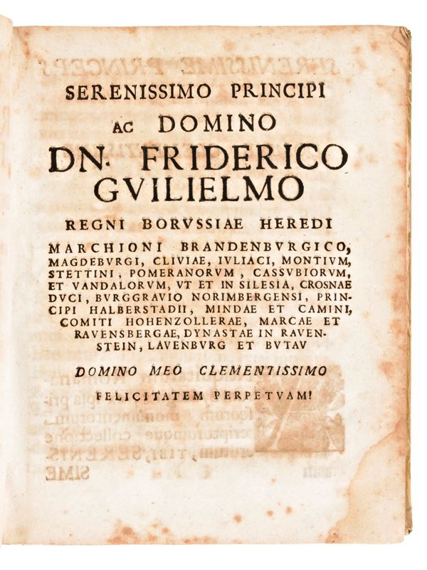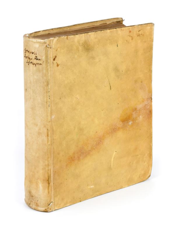 In-4ยฐ, mm. 200x170, pp. (8 of 12), 640, (32), 5 cc. of folding plates. The 2 preface leaves after the dedication are missing 2)(1 and 2)(2. Contemporary full parchment binding with handwritten titles on the spine. Copy with significant browning on the leaves. Small tears on the edges of the folding plates. Light water stains and sporadic foxing.