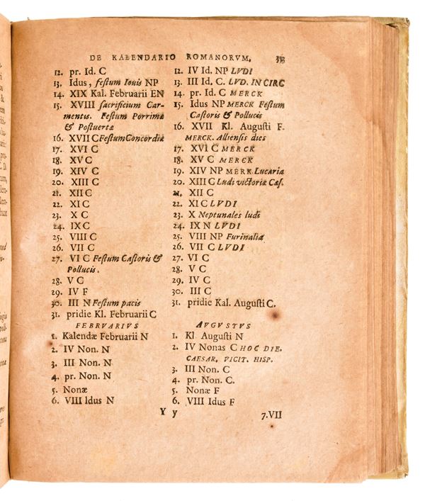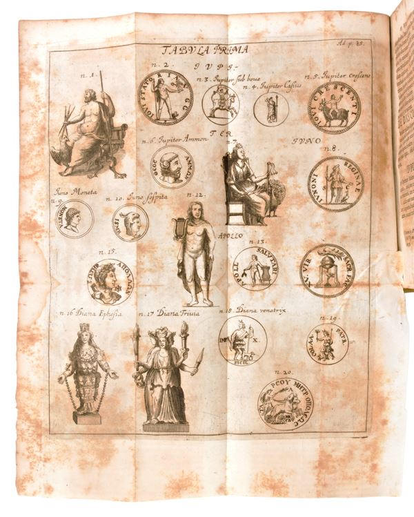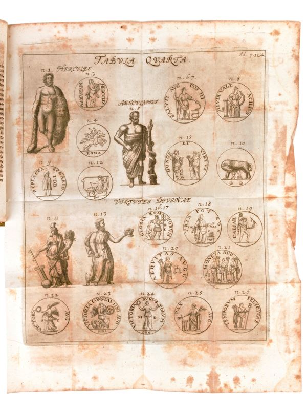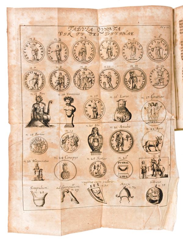 Second edition printed in Jena in 1707 for Iohannem Bielckium (in the colophon Ienae, typis Christophori Krebsii, 1701). Printer's device in copperplate on the title page. With 5 fold-out copperplate plates depicting various Roman coins and ancient equipment. Work of the German scholar and historian Burkhard Gotthelf Struve (1671-1738).