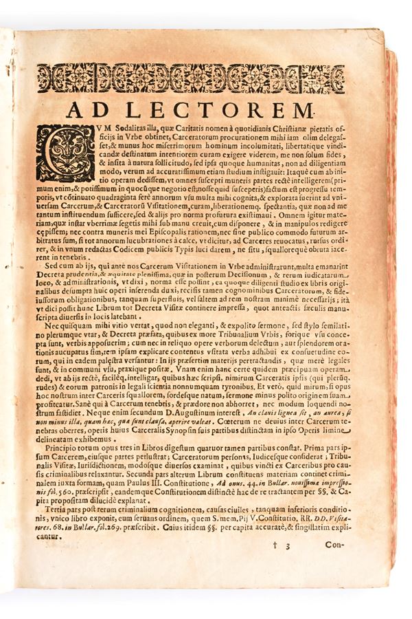 [Prisons/Rome] Scanaroli, Giovanni Battista : De visitatione carceratorum libri tres... In Rome, Tip. Apostolica, 1655