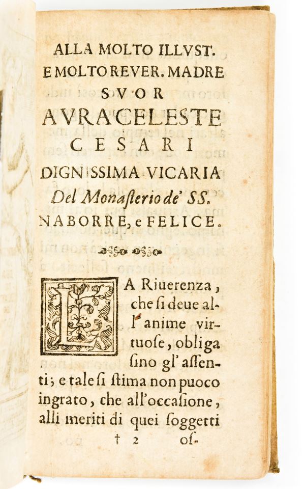 Format in-12ยฐ, mm. 150x80, pp. (12), 323, (12). Full parchment back binding with handwritten titles on the spine. Chalcographic title page, typographic device on the colophon. Good copy, with small stains and occasional foxing.