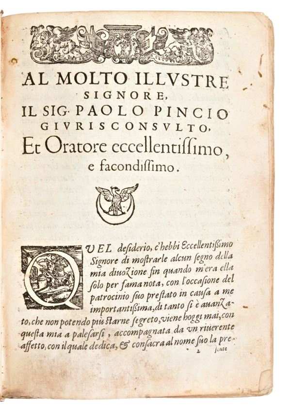 Format in-4ยฐ, mm. 220x160, pp. (64), 986, (2) Complete. Later binding (18th or 19th century) in half leather with marbled paper boards. Gold titles and decorations on the spine. Copy with a water stain on the lower margin of the leaves. Restorations on the first 3 leaves and the last 2. Sporadic foxing and signs of aging.