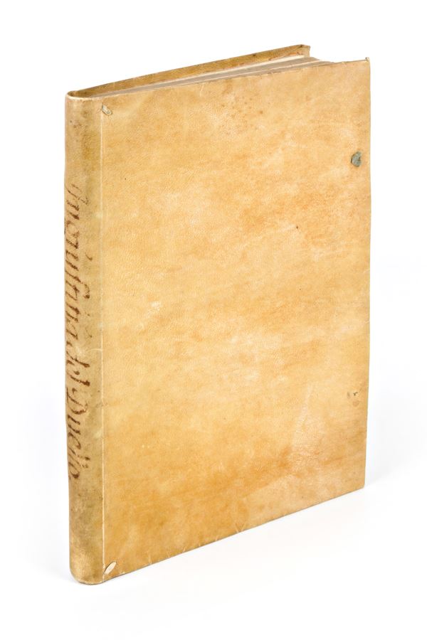 Format in-4ยฐ, mm. 205x150, pp. 198, (2). Complete. Back binding in full old parchment with handwritten titles on the lower edge and on the spine. Sporadic foxing and signs of aging.
