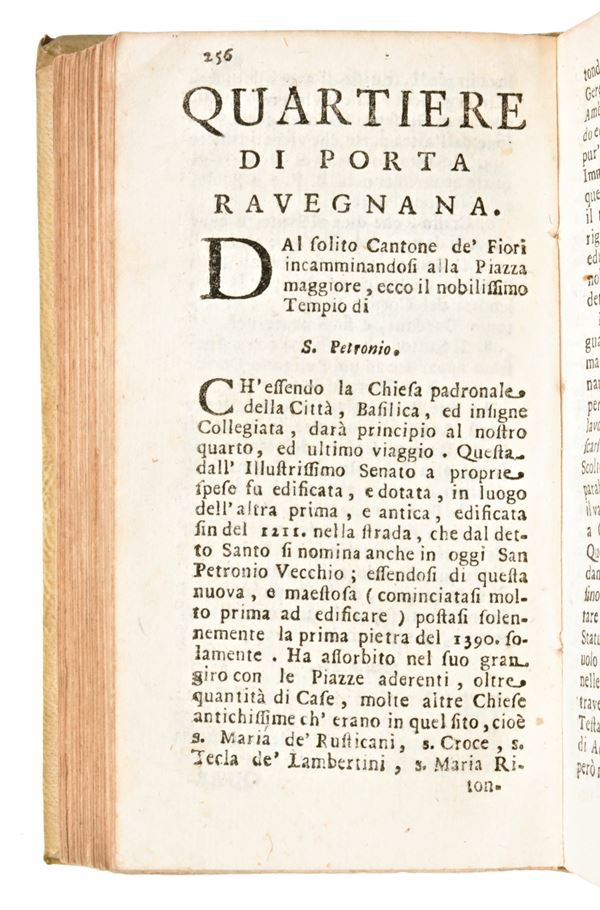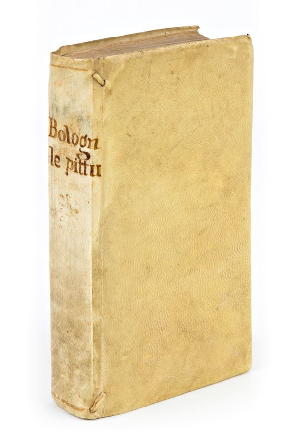 In-8ยฐ, mm. 145x85, pp. (36), 384. Contemporary full parchment binding with handwritten titles on the spine. Woodworm groove on the first 8 leaves and on the last 12 with small losses of text (Front and intro). Historiated frontispiece and initial. Light foxing and minimal signs of aging on the leaves. Uncommon edition of this classic of Bolognese art historiography whose original printing dates back to 1686.