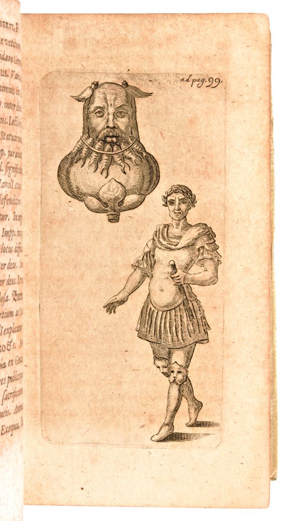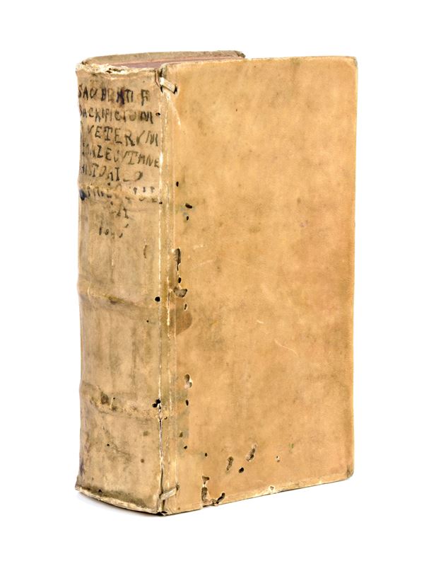 Johannis Sauberti F. De sacrificiis veterum conlectanea historico-philologica, et miscella critici. Jenae, impensis Matthaei Birckneri, excudit Samuel Krabsius, 1659. Latin text. With 4 plates engraved in intaglio. Woodcut drop caps.