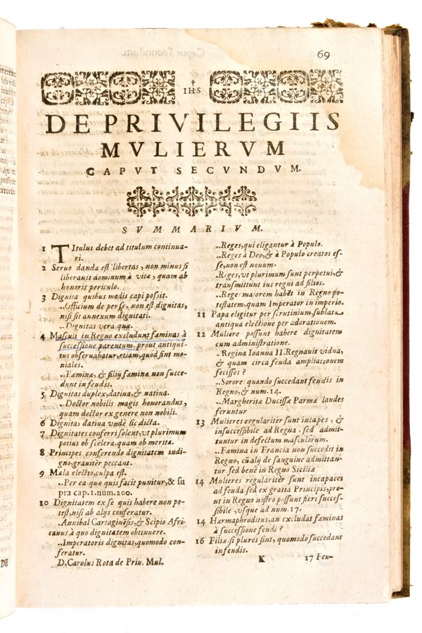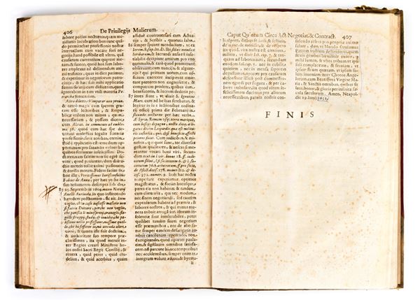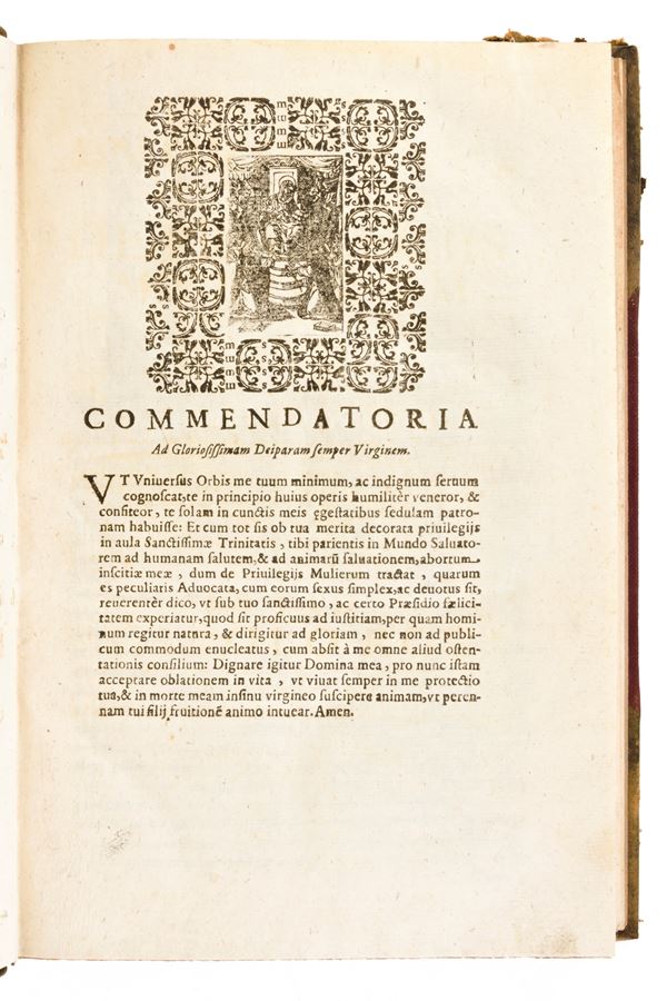 Rare edition printed in Naples in 1663, for Haeredum Francisci Tomasii. Latin text. Title page printed in red and black with woodcut mark. Headers, initials and endpieces in woodcut in the text. Ancient treatise on women's rights and hermaphroditism, by the Italian jurist Carlo Rota (17th century).