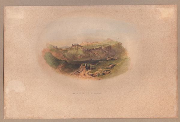 Lotto di due vedute siciliane: la valle di Agrigento e il teatro di Segesta. Litografia, 165 x 250 mm (cad. foglio).