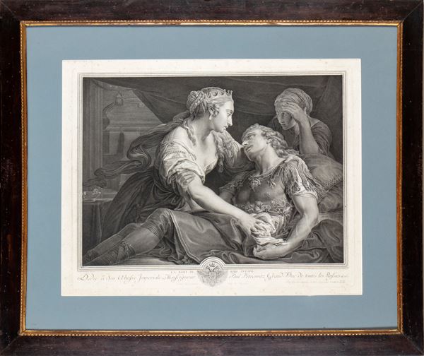 da Pompeo Girolamo Batoni, bulino, 38 x 49 cm, Bella impressione, in cornice dei primi 800 (62 x 73 x 1 cm). Soggetto tratto dal dipinto realizzato nel 1760 dal Batoni ed attualmente al Musée des Beaux Arts di Brest.