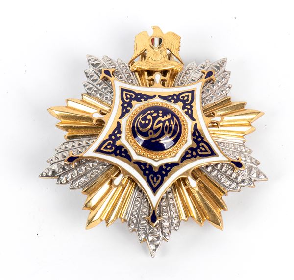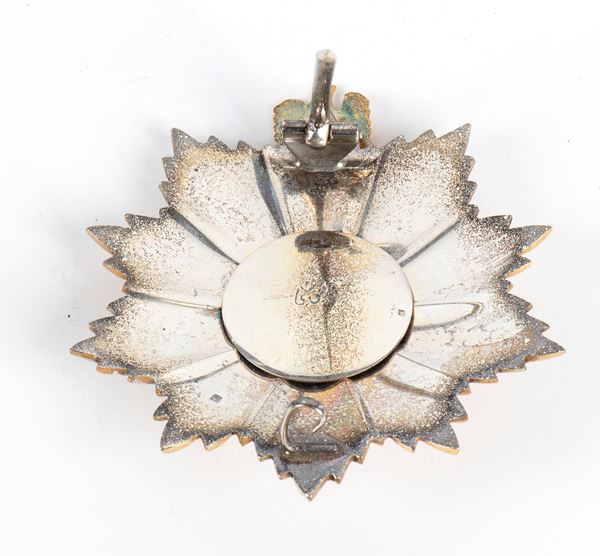 insegna di gran Croce, placca in argento parzialmente dorato e applicazioni di smalti policromi, fascia senza pendente, andato disperso, conservata in astuccio, ottimo stato
