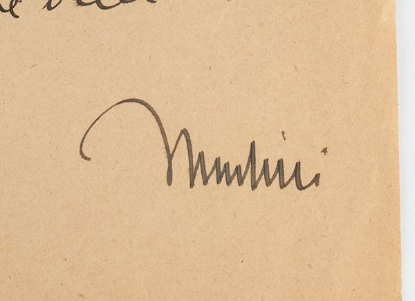 Letter on two different sheets of paper (measurements approximately 23x30 and 22x28 cm) handwritten and signed by Benito Mussolini, used as a text to then be typewritten, to be addressed to the German ambassador in Italy.