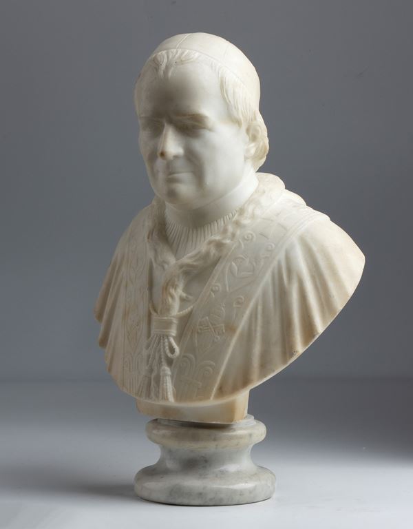 Beautiful alabaster bust of the Supreme Pontiff PIUS IX, unsigned. Measures approximately 22 cm including the base.