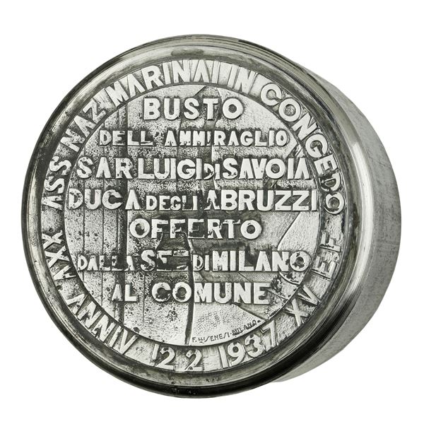 P Ass Naz Marinai In Congedo XXV Anniv 12-2-1937 Xv E F Busto Dell'Ammiraglio Sar Luigi Di Savoia Duca Degli Abruzzi Offerto Dalla Sez Di Milano Al Comune F.Lli Senesi Milano 68 x 39 mm