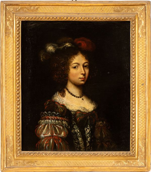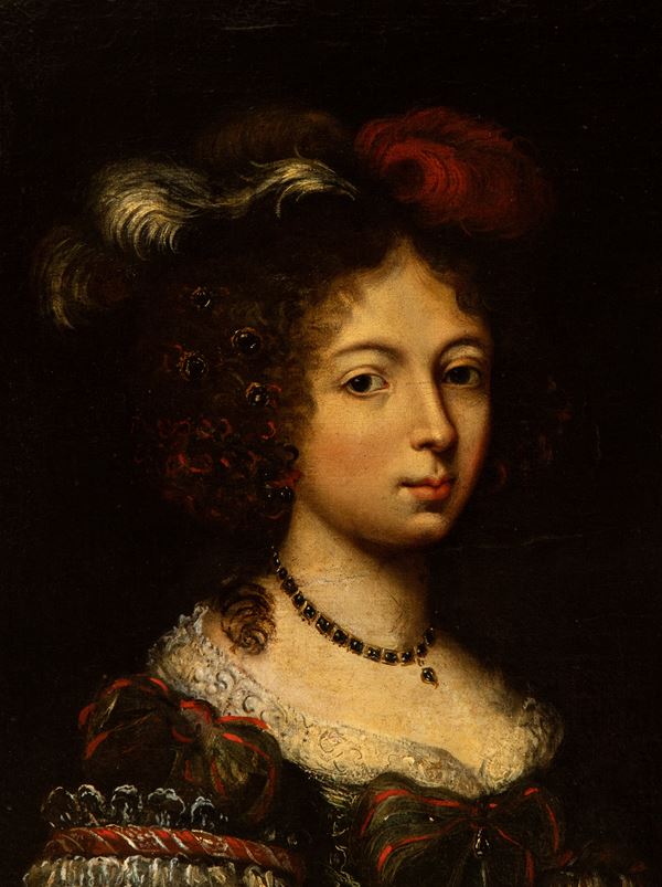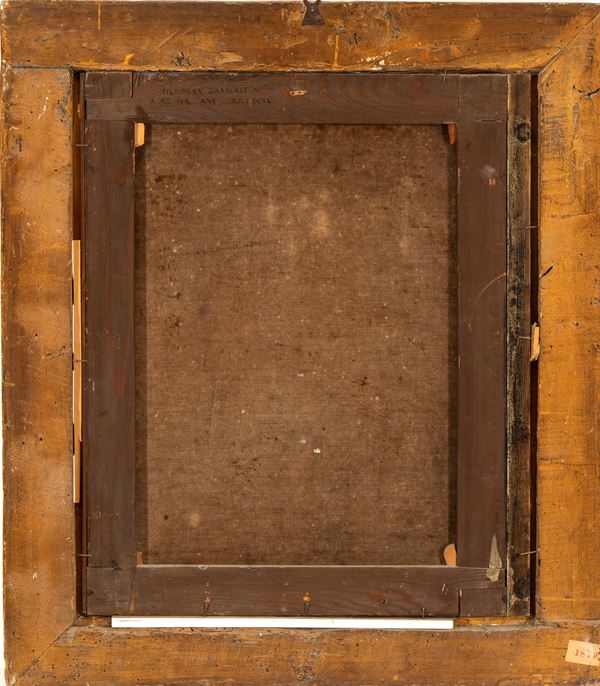 The painting bears on the back on the upper margin of the frame a brush inscription: "SUL RETRO DELLA VECCHIA TELA LEGGEVASI / FILOMENA BRANCALEONI / A. AET. SVAE XVI A.D. MDCXL".