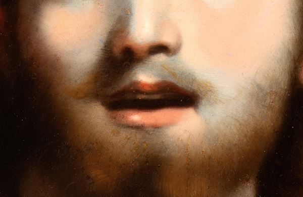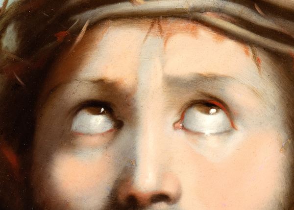 L’opera si presenta in stretta connessione con il Cristo crocifisso di Federico Barocci, conosciuto in tre versioni rispettivamente conservate al Museo del Prado a Madrid, nella chiesa dell’Ospedale a Urbania e già presso la Whitfield Fine Arts di Londra. Barocci tenne in particolare considerazione questa immagine del volto di Cristo, che impiegò autonomamente nelle due versioni autografe presso la Chiesa del Gesù a Perugia (tela, cm 41x29) e già in asta Finarte Milano il 16 Maggio 2007, lotto 8 (rame, cm 44x30), con le quali il nostro esemplare mostra chiare affinità stilistiche e qualitative.