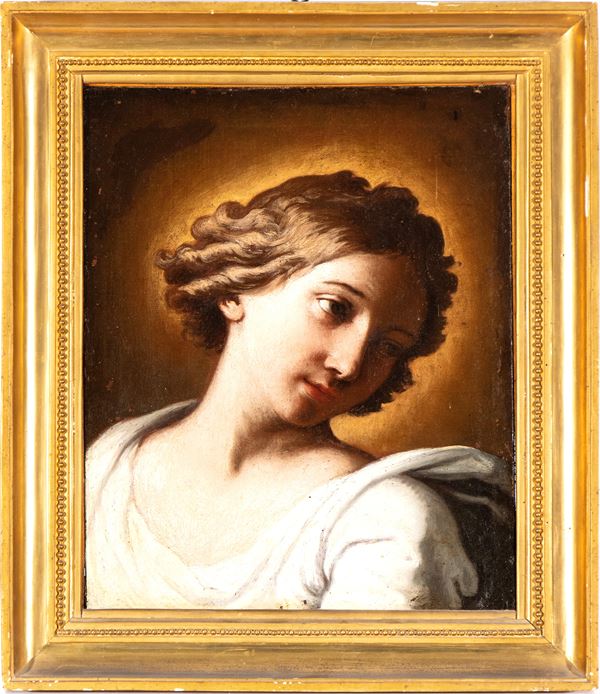 The canvas replicates the face of the angel depicted by Cerrini in the Deliverance of Saint Peter, known in the two versions in the Galleria Pallavicini in Rome and the Galleria Toschi-Mosca in Pesaro (sale Finarte-Semenzato, Venice, 4th July 2004) .