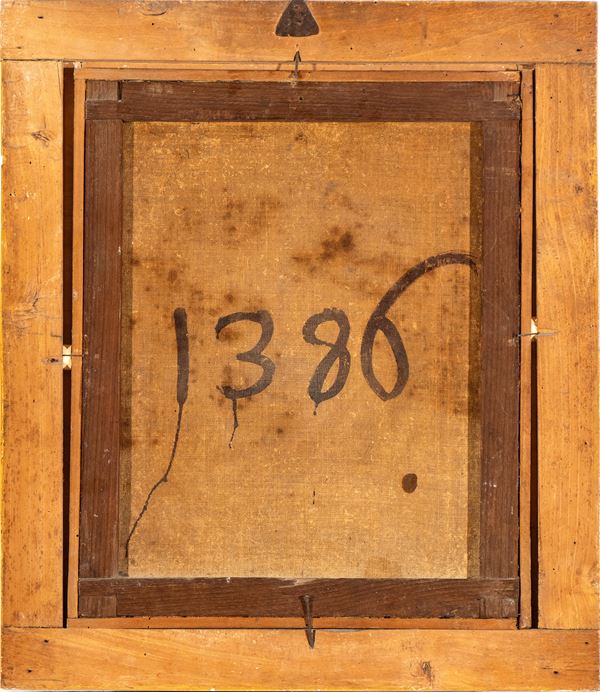 The painting bears an old brush inscription on the back with an inventory reference: "1386".