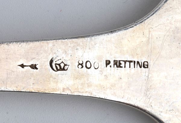 13) ladle (spoon) of oval shape: hallmarked with the hallmarks for silver in use in Germany since 1884, and mark โ800โ.