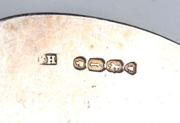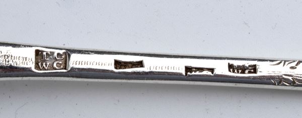 5) very small spoon: Sterling silver, hfully hallmarked London, 1860-1861, silversmith unidentifiable .
