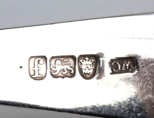 2) small paddle: Sterling silver, fully hallmarked London, 1784-1785, silversmith unidentifiable.