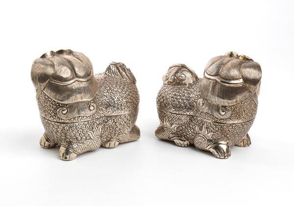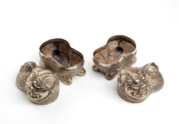 A pair Cambodian solid silver Betel boxes, Early 20th century