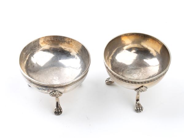A pair of Italian silver salt cellars, Naples, 1832-1872