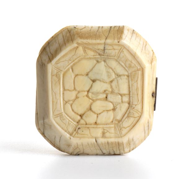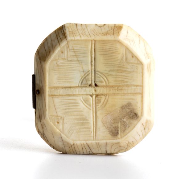 elephant ivory (Elephas maximus Linnaeus, 1758 or Loxodonta africana Blumenbach, 1797). The scene on the left depicts a woman lying on a bed with a goat at the end of which two angels keep watch, while in the scene on the right the scene continues with the depiction of a gentleman surrounded by servants intent on entering the room where the woman lies.