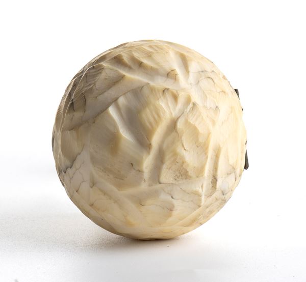 Carved ivory foldable diptych ball, France, Dieppe (?) 19th century