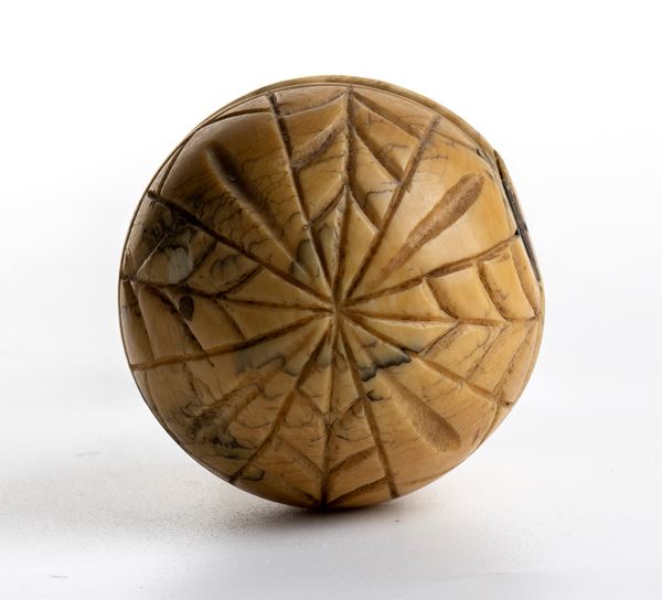 Carved ivory foldable diptych ball, France, Dieppe (?) 19th century