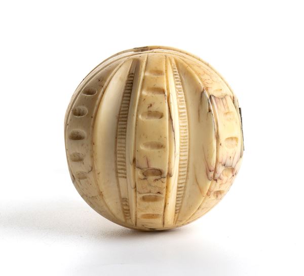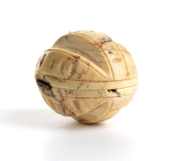 Carved ivory foldable diptych ball, Francia, Dieppe (?), XIX secolo