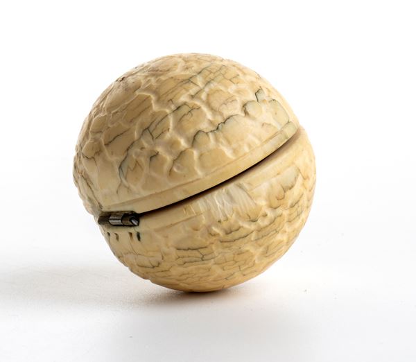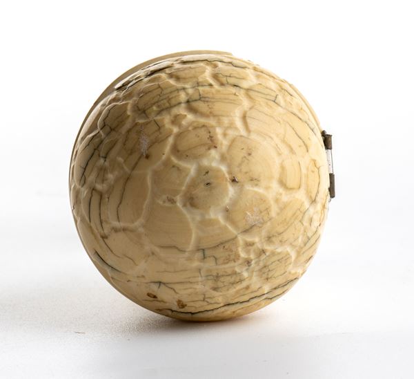 Carved ivory foldable diptych ball, France, Dieppe (?) 19th century