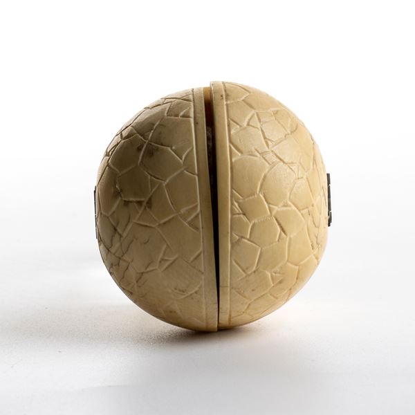 Carved ivory foldable triptych ball, France, Dieppe (?) 19th century