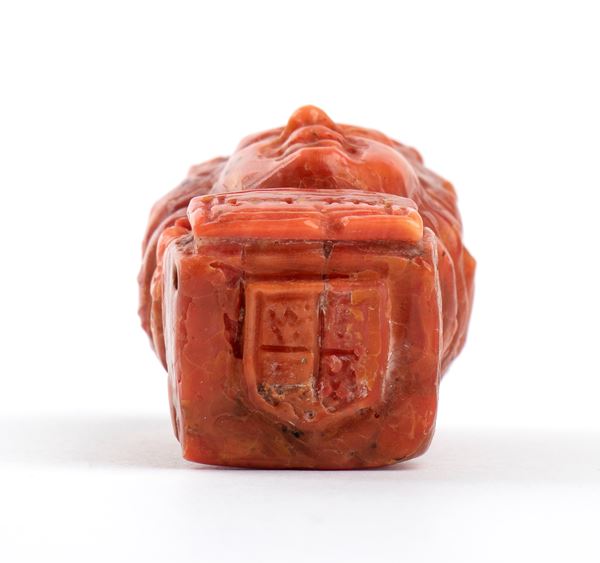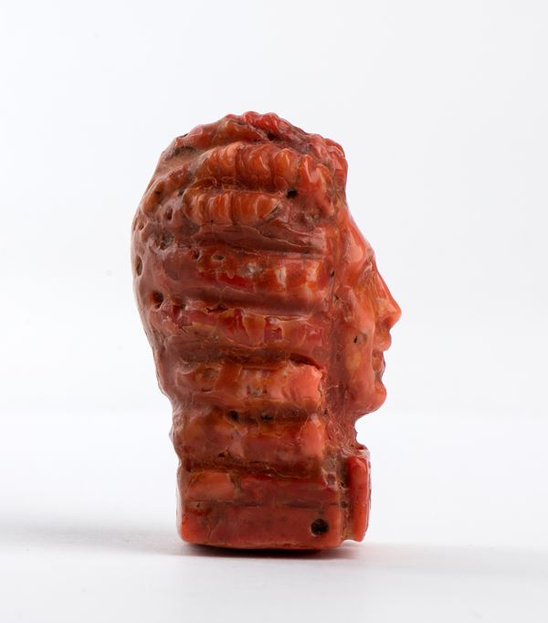 Red Mediterranean coral (Corallum Rubrum), carved to depict the head of Louis XIV resting on a base.