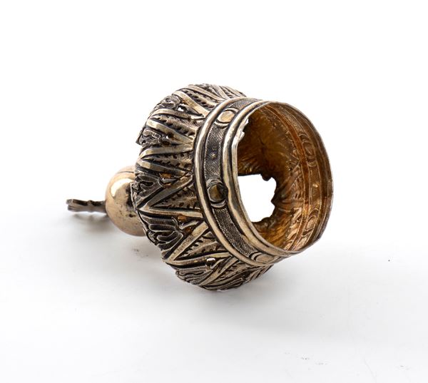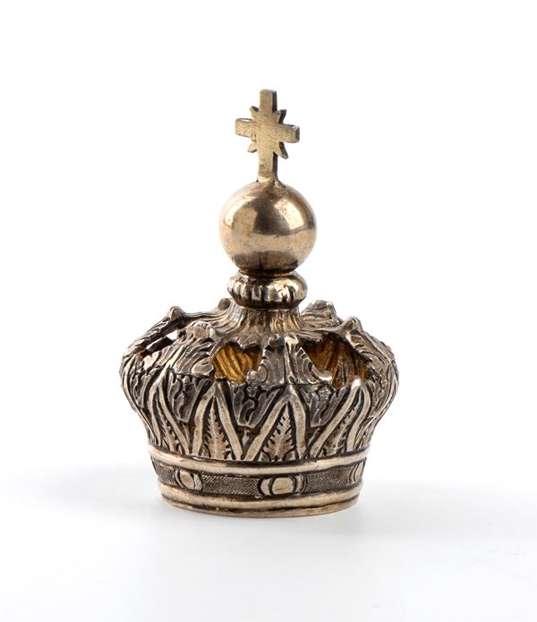 with an open motif of large acanthus leaves. The decoration develops from the base composed of a circular ribbon, knotting in the centre, ending with a globe surmounted by a cross.