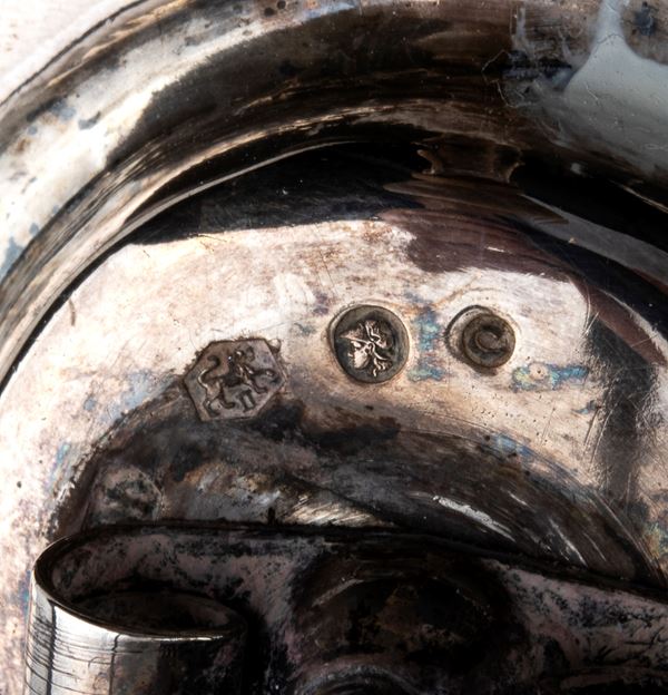 833/1000 silver, hallmarked with the silver guild marks used in Netherlands from 1814 to 1953; Lion passant mark for the 2nd standard purity (minimum 833/1000), the Minerva head mark (duty mark) and the date letter mark โCโ for 1837.