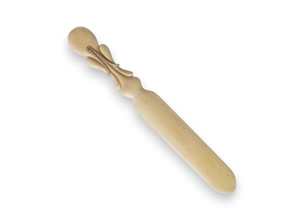 carved elephant ivory letter opener (Elephas maximus Linnaeus, 1758 or Loxodonta africana Blumenbach, 1797) engraved with the monogram IRC on the front of the handle.