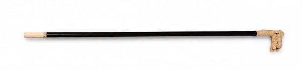 The shaft is made of ebony (Diospyros spp), a type of wood highly valued for its strength and deep dark color, which elegantly contrasts with the ivory handle and ivory tip.