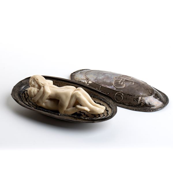 The carving is placed in a silver two-valve case, apparently not hallmarked.
